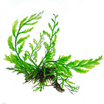 Bolbitis sp. 'Mini' Guinea 2002 comes from the West Africa, a fern with very beautiful transparent green leaves, 10-15 cm tall. One of the smallest true aquatic Bolbitis. When planting do not cover the rhizome because it will rot, and it is best to plant Bolbitis on a root or stone. Keep the plant in position with fishing line until it has gained a hold. Easy to propagate by splitting the horizontal rhizome. Growth can be increased considerably by supplying CO2, and is only optimal in soft, slightly acidic water.