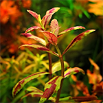 Limnophila sp. 'Belem' is a very attractive mid-ground plant. It also works well as background plant. Limnophila sp. 'Belem' branches nicely and is easy to propagate. It has a very nice color and serrated leaves. This plant is considered a moderate plant to grow. CO2 is needed for nice growth but not necessary for sustained growth. Under higher light it can get a purple color bleeding through the green leaves.